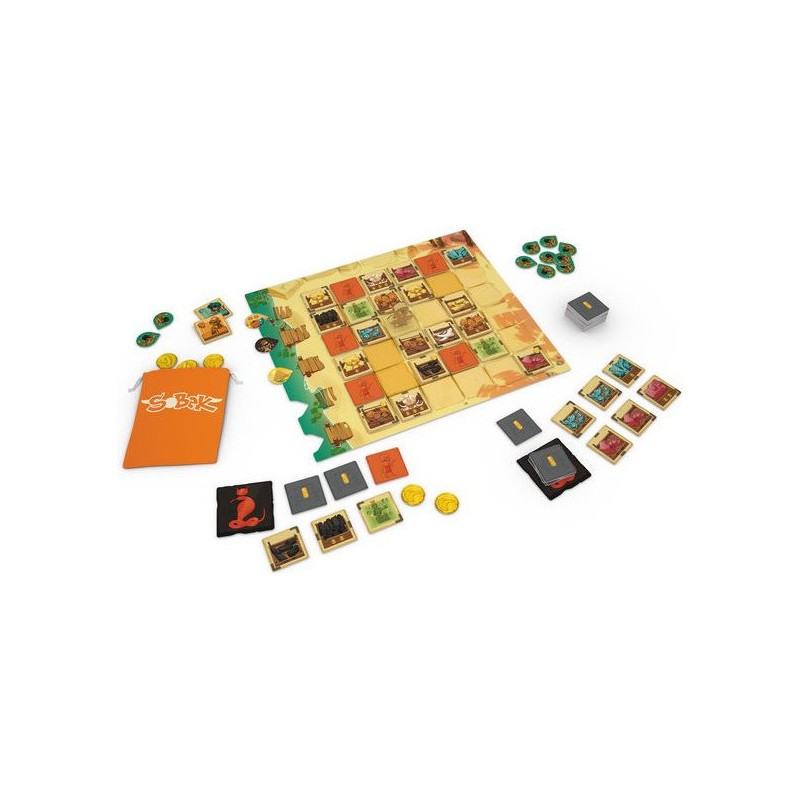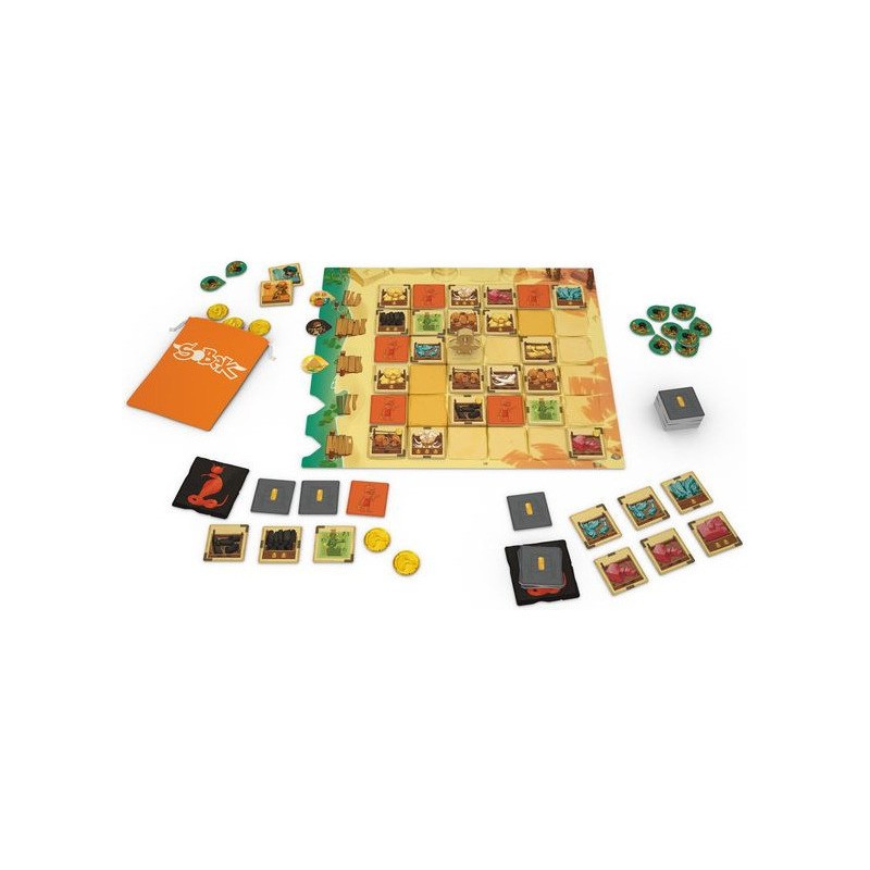 La métropole est en effervescence, la construction du temple dédié à Sobek est en cours. Votre guilde marchande est bien décidé à tirer le meilleur du marché qui a vu le jour juste à côté. Pour proliférer il vous faudra emmagasiner les plus de ressources, mais attention pas par n’importe quel moyen. Si vous optez pour la corruption, elle aura forcément un coût. C’est en souhaitant corriger quelques défauts de la première version que Bruno Cathala et Sébastien Pauchon ont imaginé une version deux joueurs. En effet, les quelques améliorations apportées rendaient le jeu jouable qu’en duo. La messe était dite.