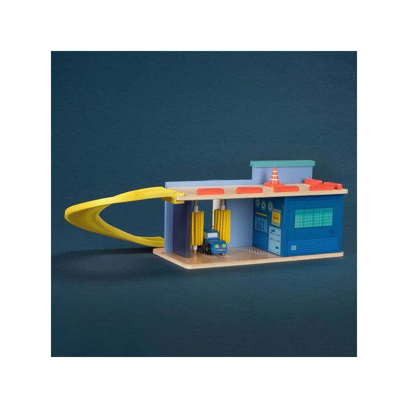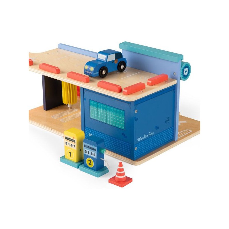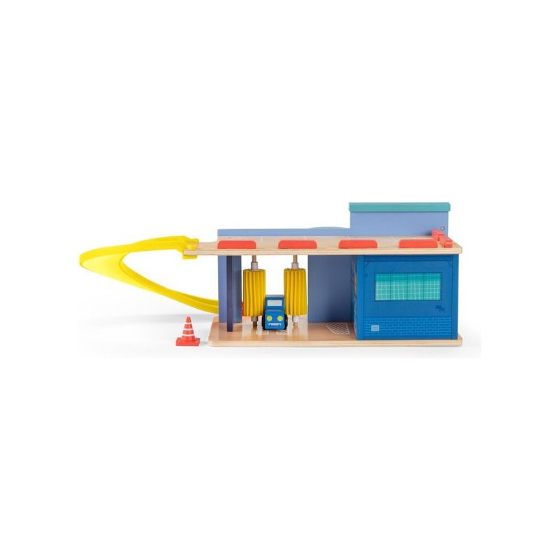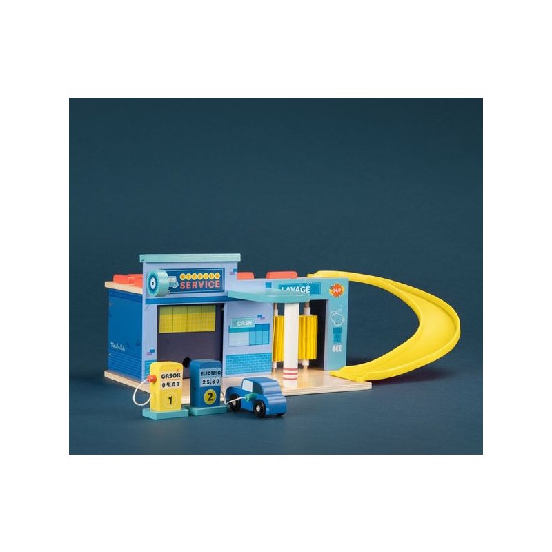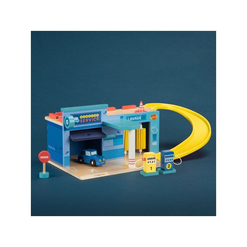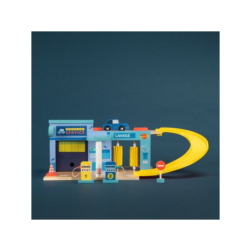 Station-service en bois avec 2 niveaux et accessoires pour faire fonctionner pleinement le lavage de voiture, la réparation automobile et la station d'essence/chargement. Remplir les réservoirs, laver les voitures, réparer les pannes : les petits peuvent inventer des histoires incroyables. Contenu : Station-service, 1 x rampe, 1 x voiture, 1 x panneau routier, 1 x cônes de signalisation, station d'essence/chargement.