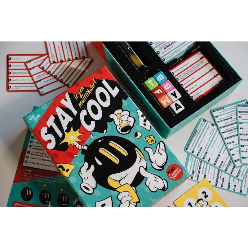 L'un des atouts majeurs de Stay Cool est sa grande accessibilité : tout le monde peut y jouer, quel que soit son niveau de jeu ou ses compétences. Cette convivialité en fait un jeu très inclusif. Pourtant, derrière cette apparente simplicité se cache une véritable dose de stress et de défis ! Jongler entre répondre aux questions du premier joueur, manipuler les dés pour trouver les bonnes lettres, et répondre oralement aux questions du second joueur peut se révéler être un vrai casse-tête pour certains. La tension monte et l’ambiance devient explosive.