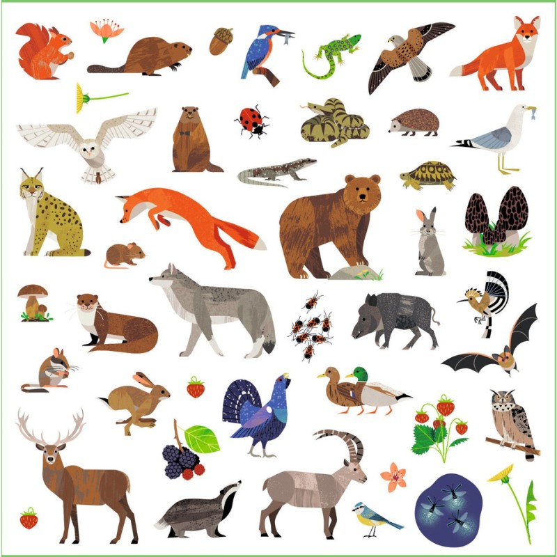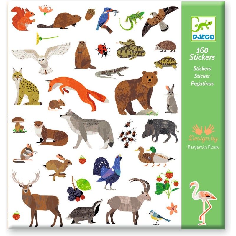 Une pochette de 160 stickers sur le thème des animaux d'Europe. Des plus incontournables cerf, renard ou sanglier aux moins connus tétra, blaireau ou chardonneret, l'enfant découvre la richesse de la faune et de la flore européenne. Il colle librement les stickers pour créer de jolies scènes ou s’en sert pour décorer ce qu’il souhaite !