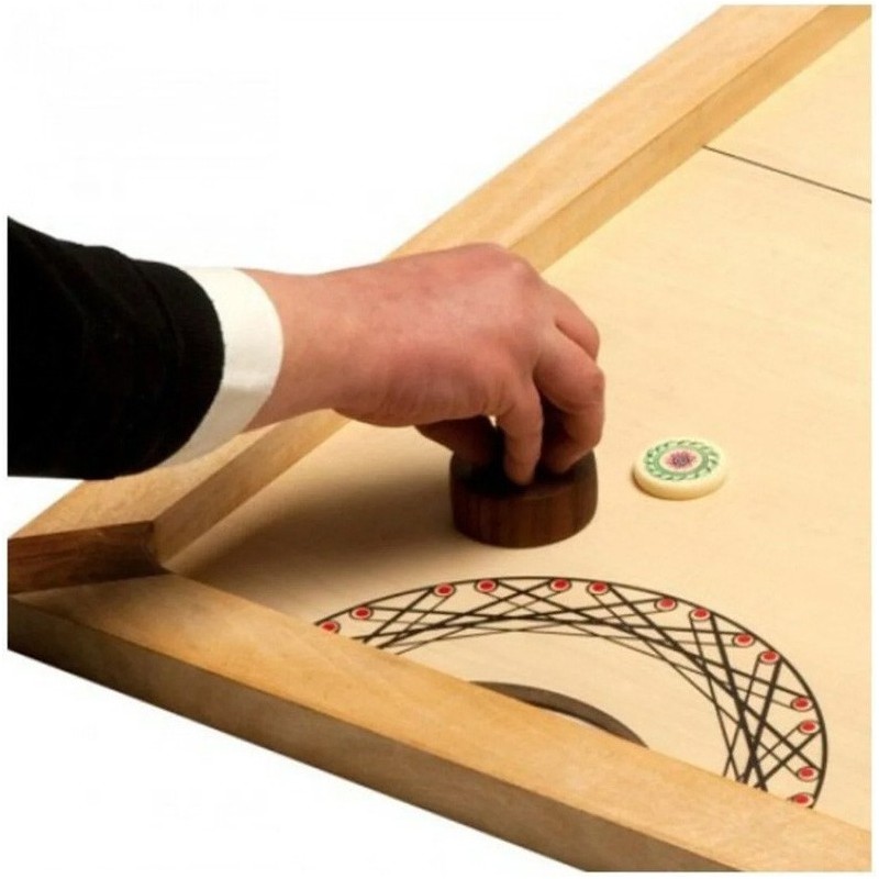 Le modèle Champion World Carrom Tour est le carrom le plus apprécié des joueurs chevronnés. Le Carrom Champion est utilisé lors des Championnats Nationaux et Internationaux. Le soin apporté au polissage du plateau contribue à une glisse de jeu exceptionnelle. Son cadre est doté de bandes accélérantes permettant un rebond respectant la norme officielle. Les Championnats du monde de Carrom à Cannes en 2008 ont été joués sur ce modèle ainsi que la première session du World Carrom Tour en 2009. A recommander aux amoureux du Carrom. Contenu :