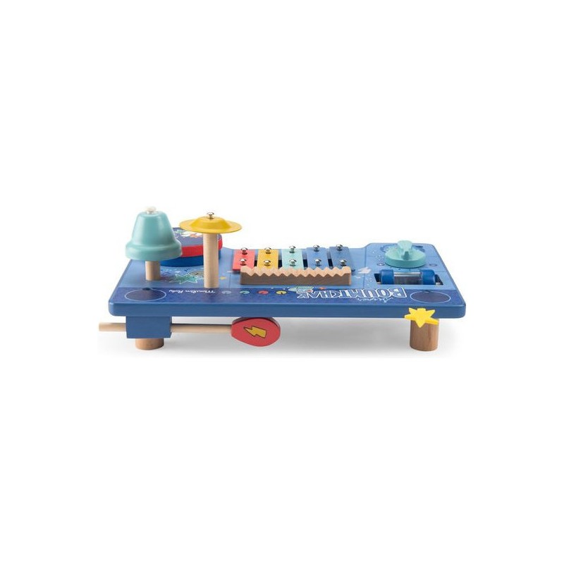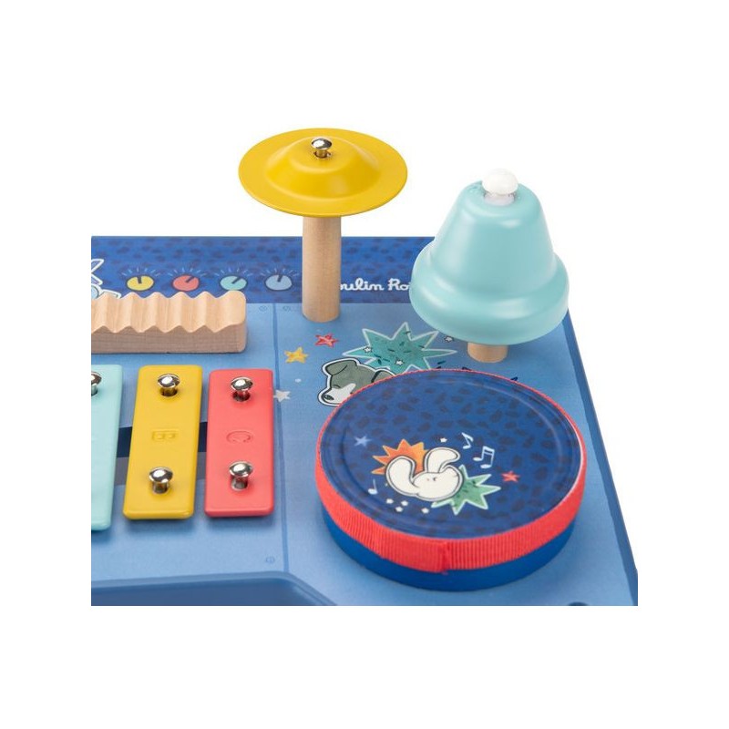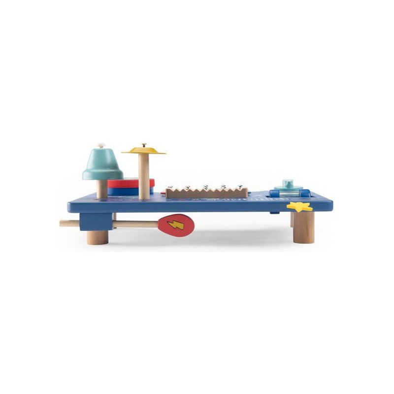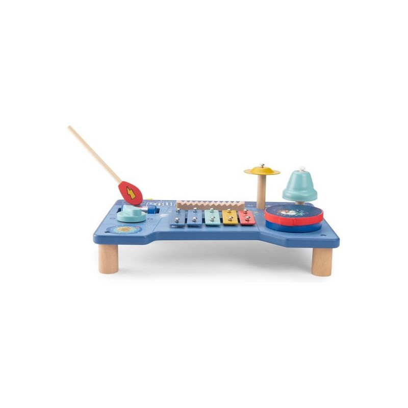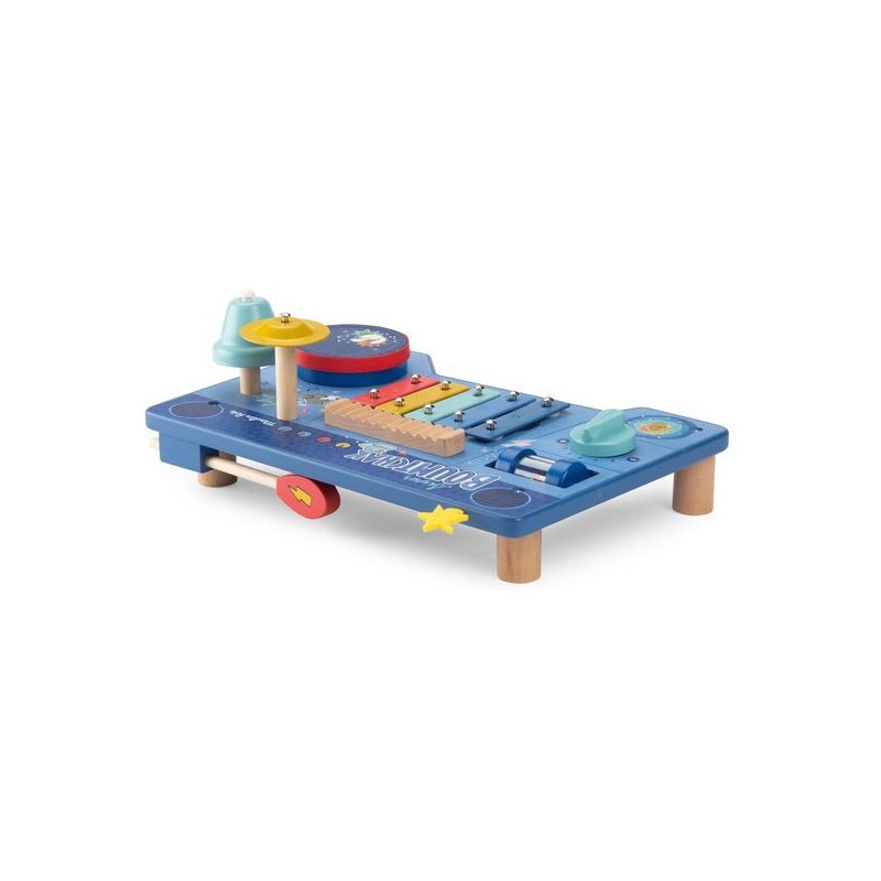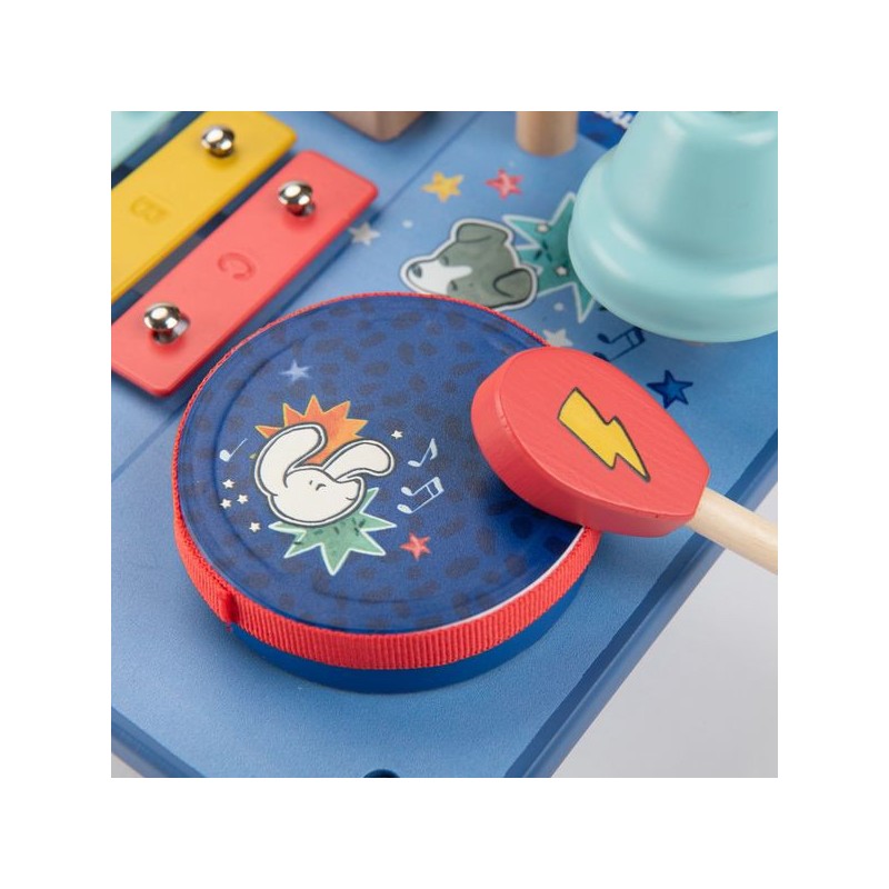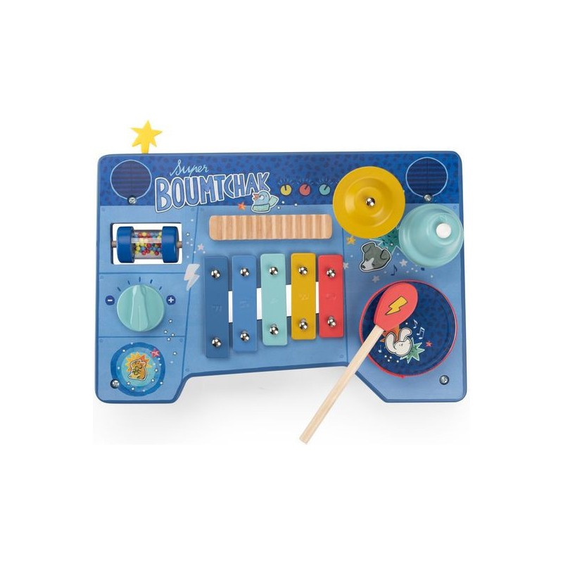 Le super boumtchak de Puce & Pilou est arrivé ! Taper sur le tambour, monter le volume, secouer les billes, faire tinter la cymbale…Une multitude d'activités à découvrir pour bébé. En bois et illustré, cette table musicale est facilement transportable.