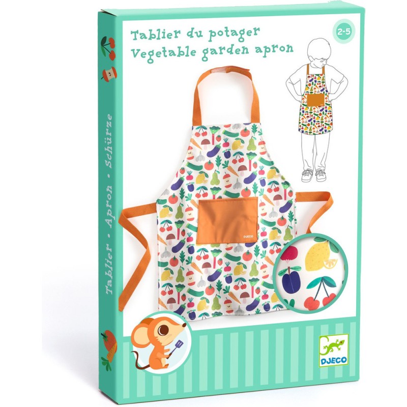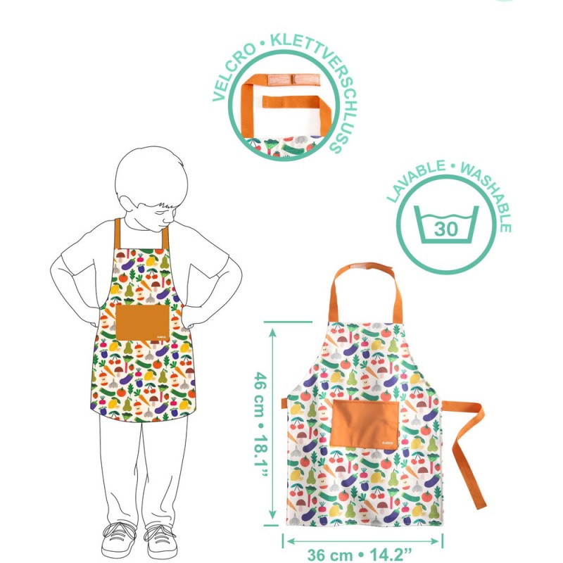 Un tablier pour s'amuser à cuisiner avec les grands sans se salir. Taille unique avec la possibilité de régler la sangle du cou par bande auto-agrippante et d'ajuster la taille à l'aide de liens à nouer. En matière lavable en machine à 30 °.