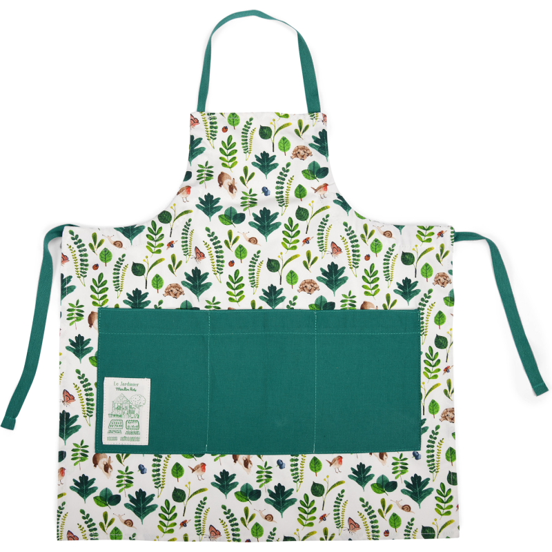 Ce joli tablier en toile lavable, illustré sur le thème du jardin, permet aux enfants de jardiner sans se salir. Il dispose d'une grande poche centrale compartimentée en 3 qui permet d'avoir toujours à portée de main, graines Ou gants.