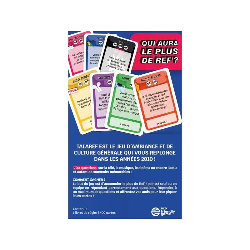 Le but du jeu est d’accumuler le plus de Ref’ (points) seul ou en équipe, en répondant correctement aux questions.