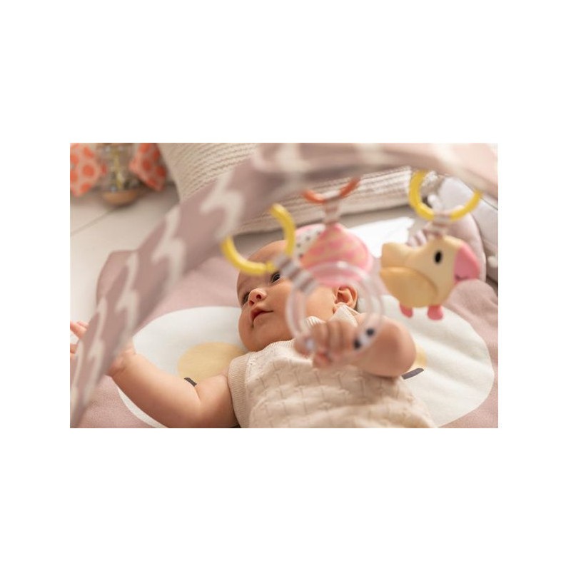 Il va manipuler les éléments en suspend. Bébé va alors développer sa motricité et sa dextérité. Ce tapis est très pratique car il peut se plier pour faciliter le transport : vous allez l'emmener partout et ne plus le quitter. Ce tapis est parfait comme cadeau de naissance.