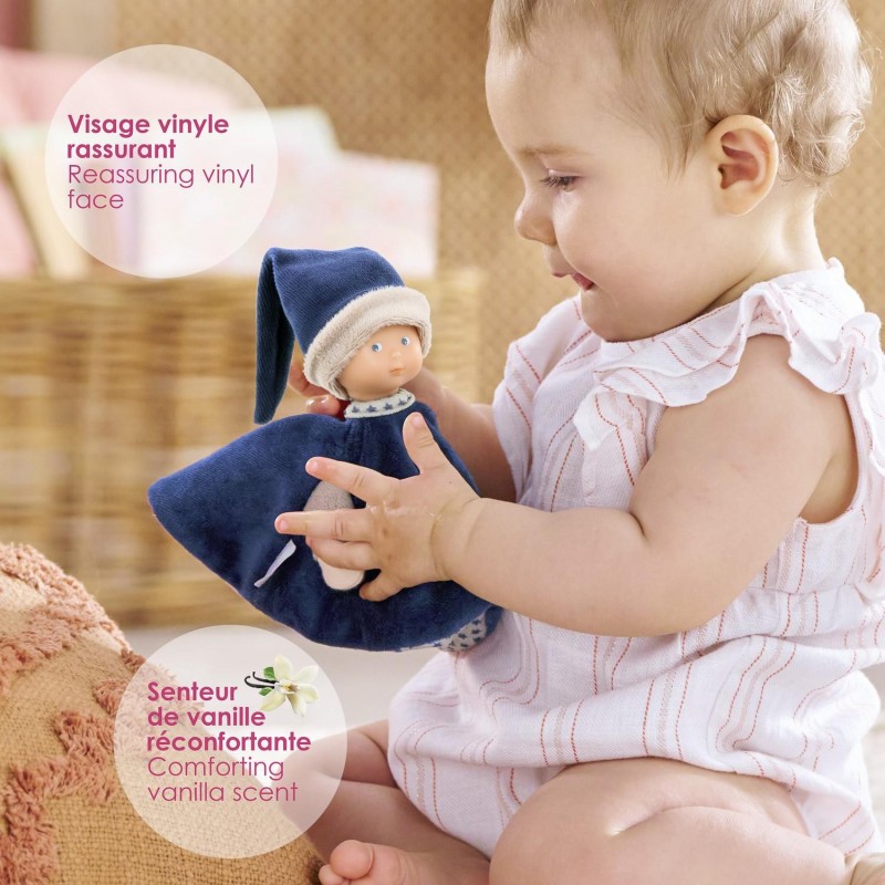 Visage vinyle rassurant. Senteur de vanille réconfortante. 17 cm. Ø22 cm. Cadeau de naissance idéal.