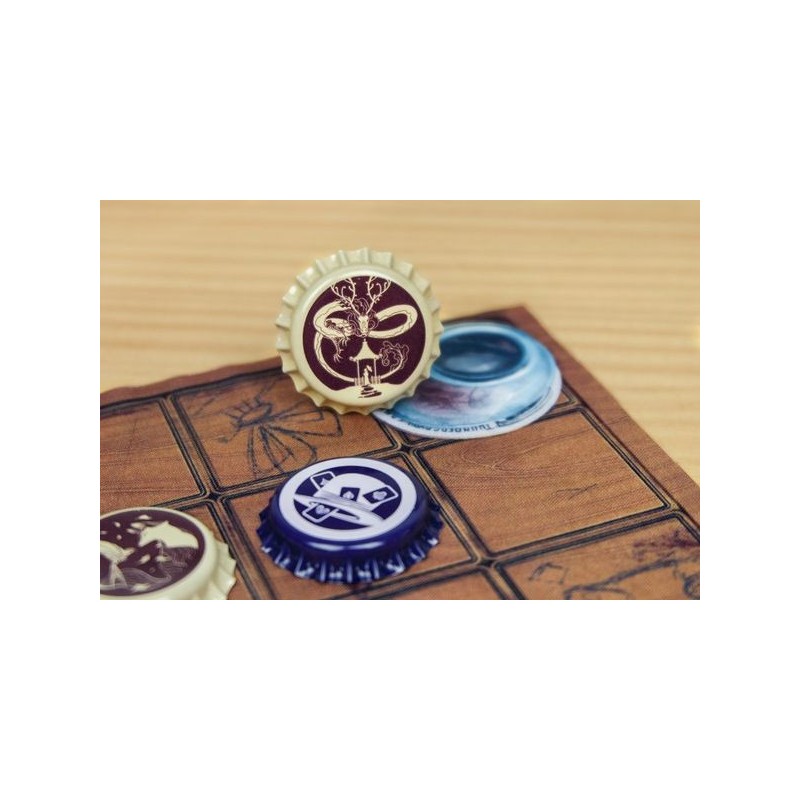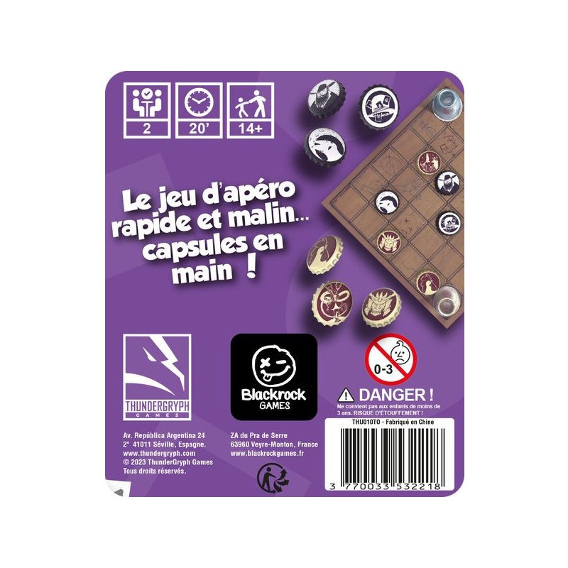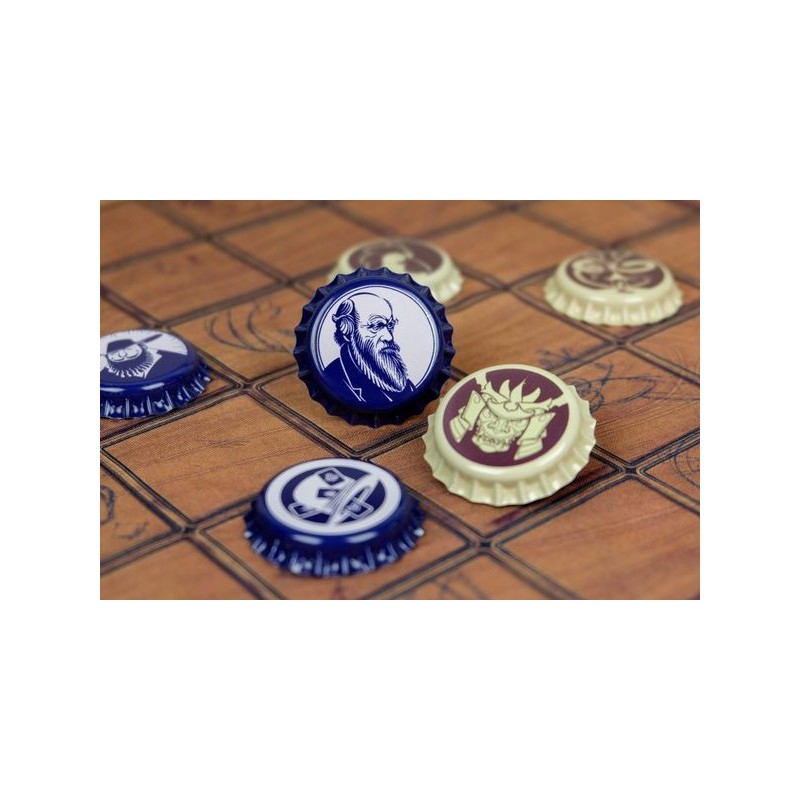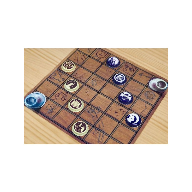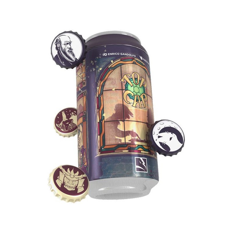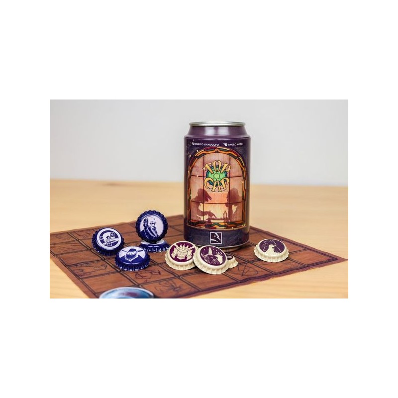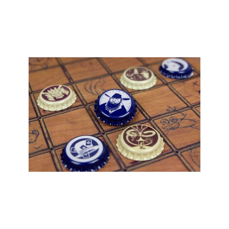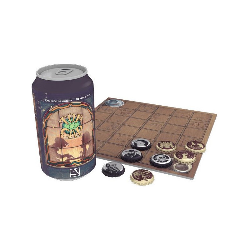 Top Cap est un jeu abstrait de déplacement dans lequel chaque capsule se déplacent en fonction du nombre de capsules qui leurs sont adjacentes. Si vous parvenez à positionner une capsule sur la case bouteille de votre adversaire, vous remportez la partie.