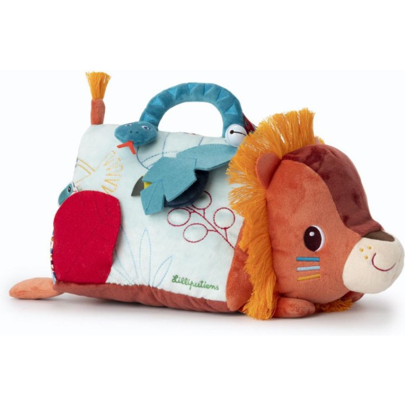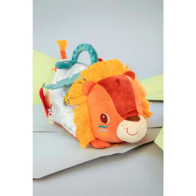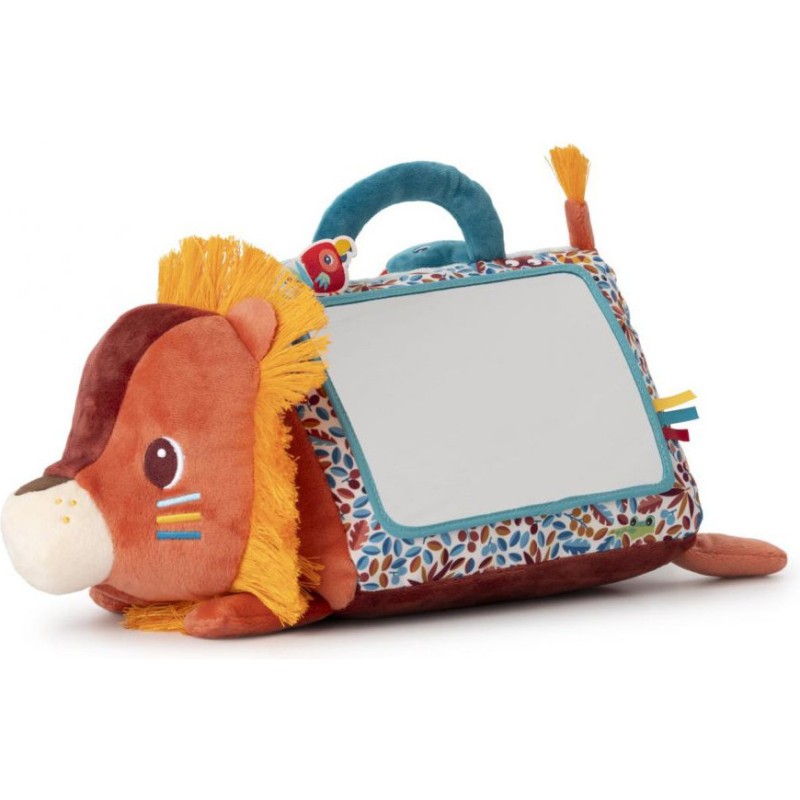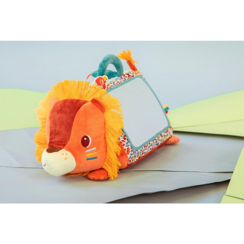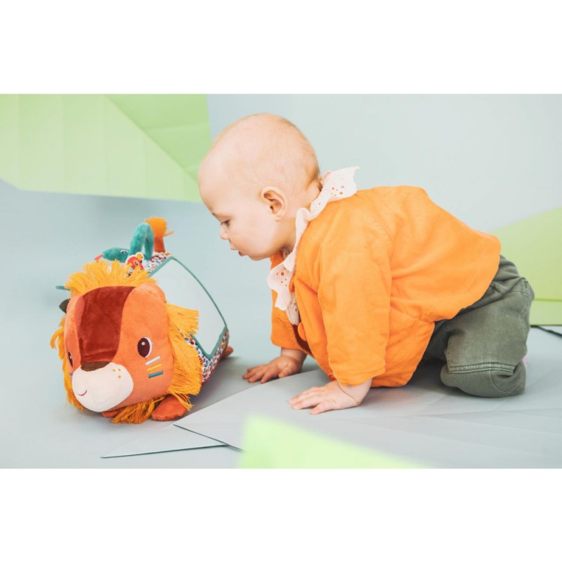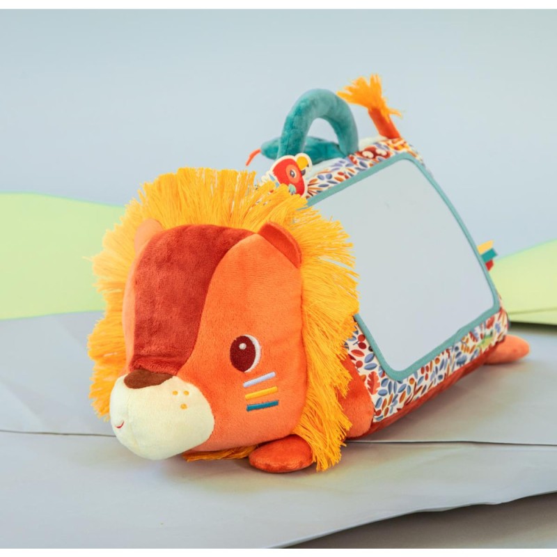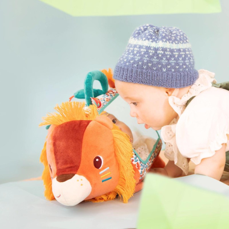 Disponible mi-octobre sur l’eshopBébé se met sur le ventre ? Jack le lion aussi ! Pour amuser et éveiller les plus petits, dès 3 mois, notre lion câlin se présente sous forme de triangle d'activités en tissu avec un grand miroir ! Au programme : 6 activités disponibles de part et d'autre de la peluche, pour de longues heures de jeu et d'éveil sensoriel.