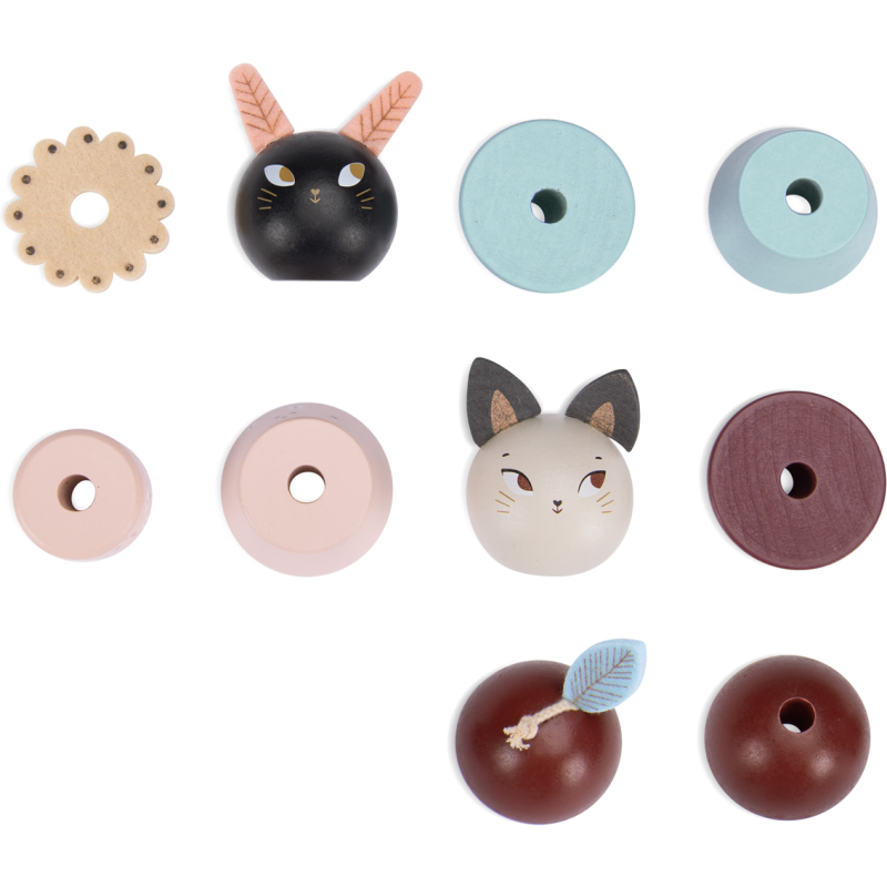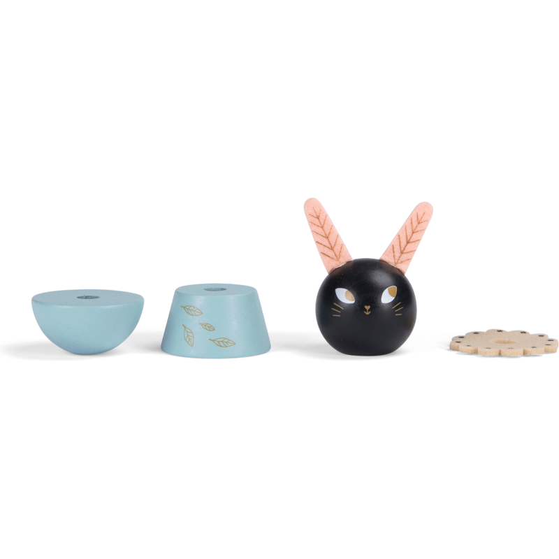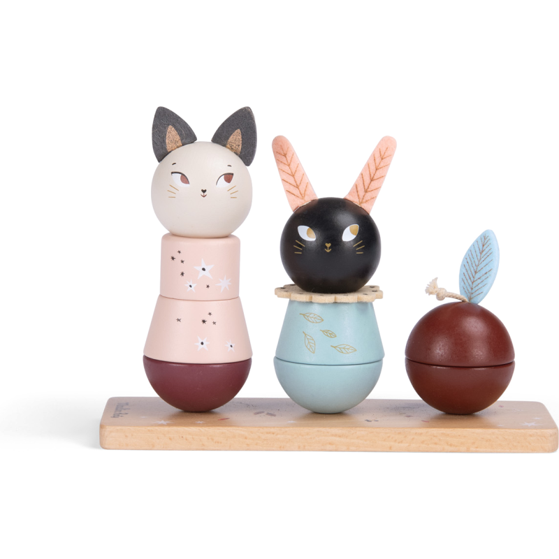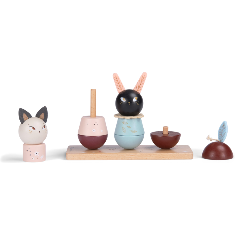 Un jouet à empiler en bois pour développer la capacité de l'enfant à manipuler et compter. Sur un socle en bois, empilez les parties en bois coloré pour recomposer les doux esprits d'Après la pluie… ou mélangez-les !