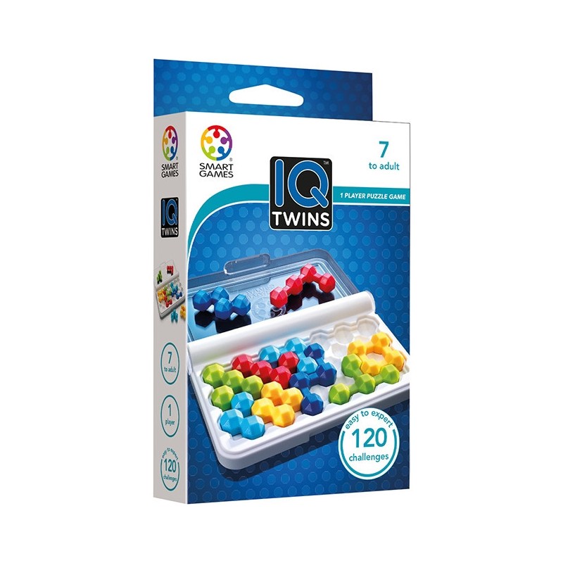 Iq Twins est un jeu de casse-tête et de réflexion édité par Smart Games pour les enfants à partir de 7 ans. Le but du jeu est de placer des pièces de couleur sur un plateau en respectant les contraintes imposées par les cartes défi. Le jeu propose 120 défis de difficulté croissante, qui développent la concentration, la logique et la résolution de problèmes.