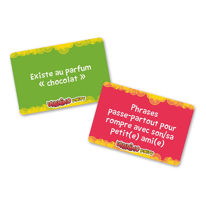 Est-ce que tu penses ce que je pense ? Dans Unanimo Party, plus on pense comme ses adversaires, plus on marque de points ! Après avoir tiré une carte « thème », tout le monde saisit son crayon et note sur sa feuille six mots en rapport avec le thème imposé.