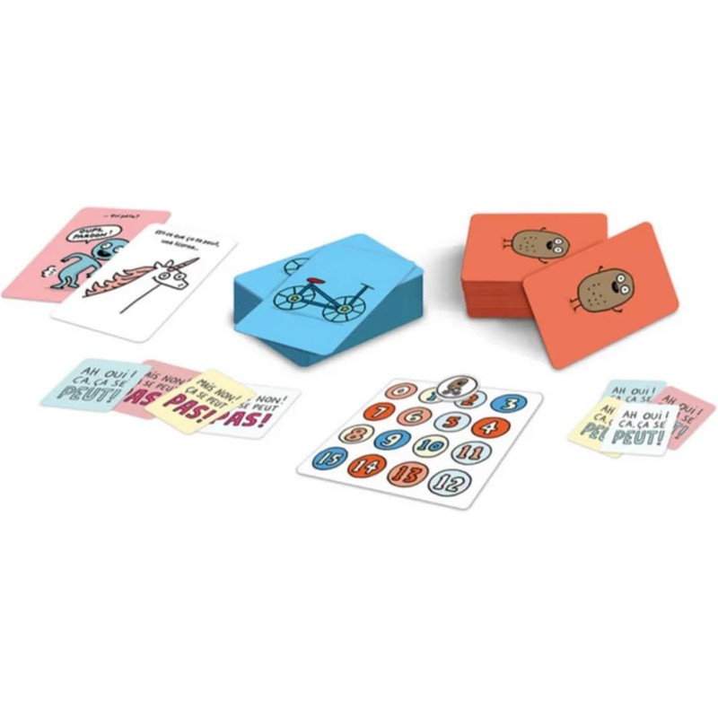Est-ce que ça se peut une patate à vélo ? Une licorne qui pète ? Une patate à vélo – Le jeu, est un jeu dans lequel vous devez décider si les combinaisons se peuvent ou pas en essayant d’avoir tous la même réponse pour avancer sur la piste.