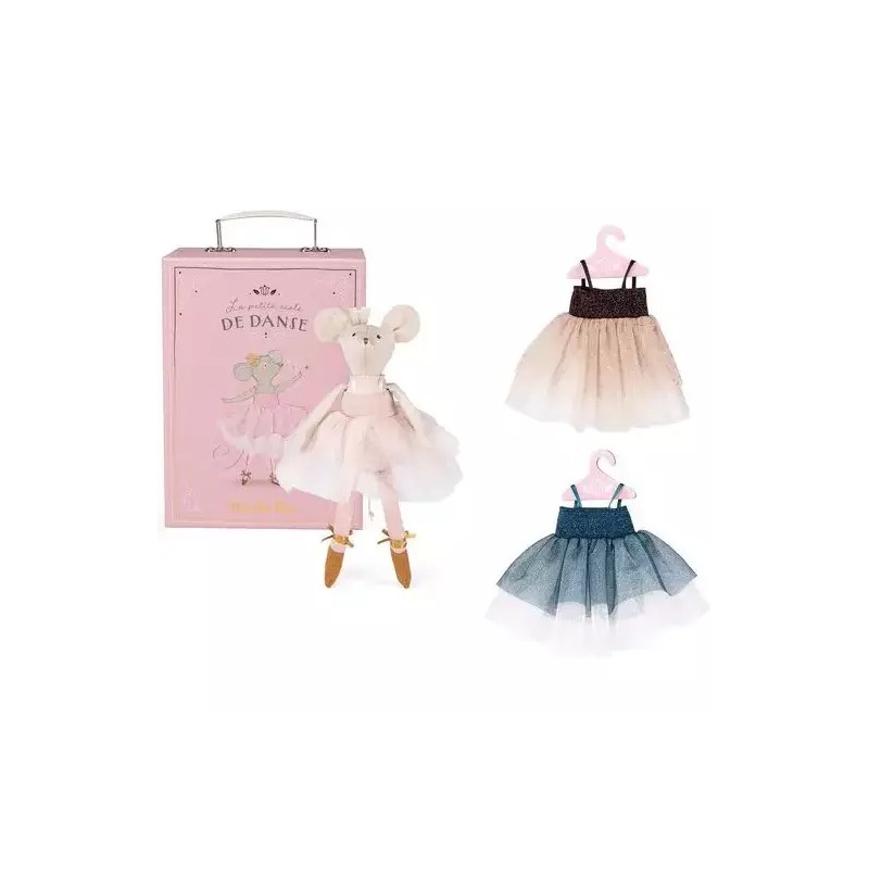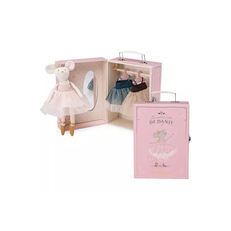Petite Souris de l'école de danse nous invite dans son dressing. Une valisette armoire avec miroir intégré qui comprend 3 robes tutu (étoile, nacre, luxe) sur cintre. Pluie de paillettes, ça virevolte et ça brille ! En piste pour des instants magiques !