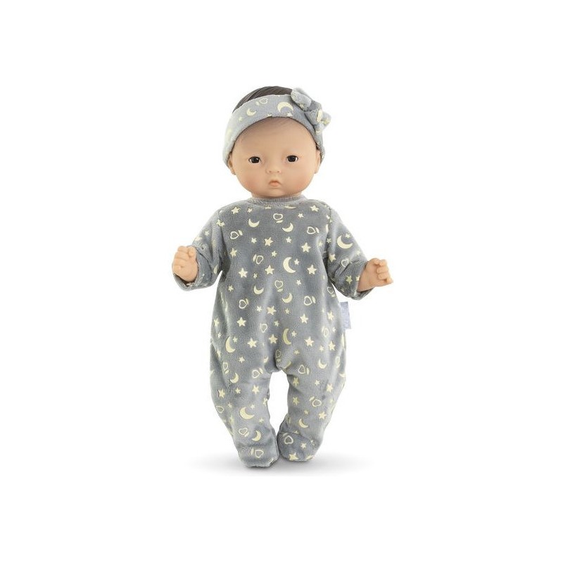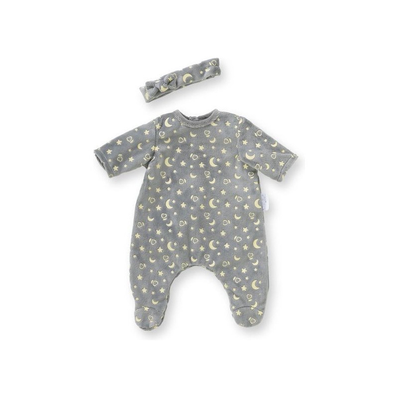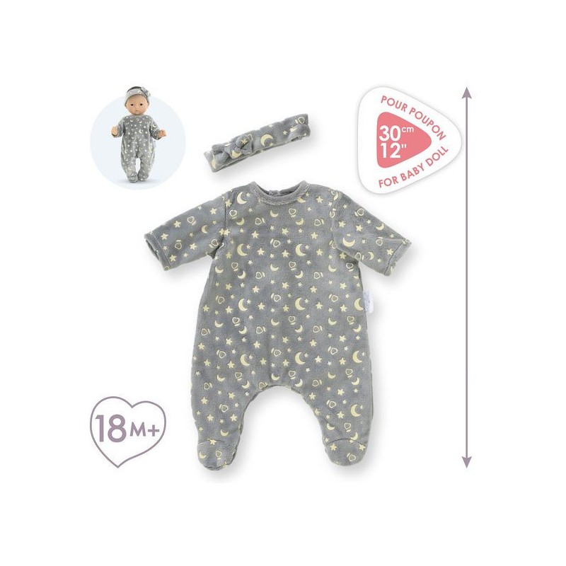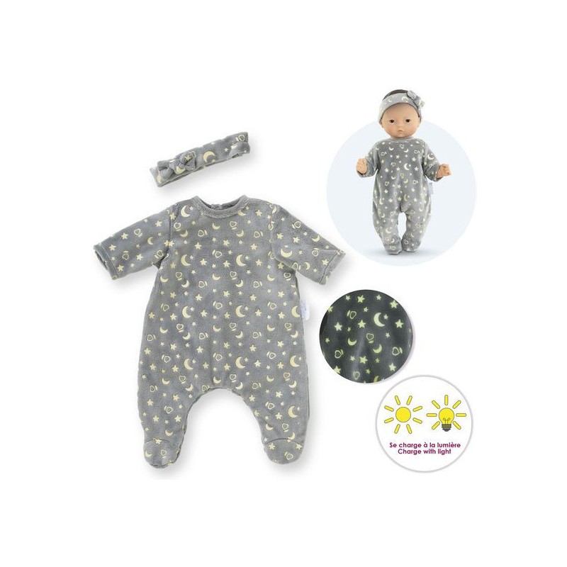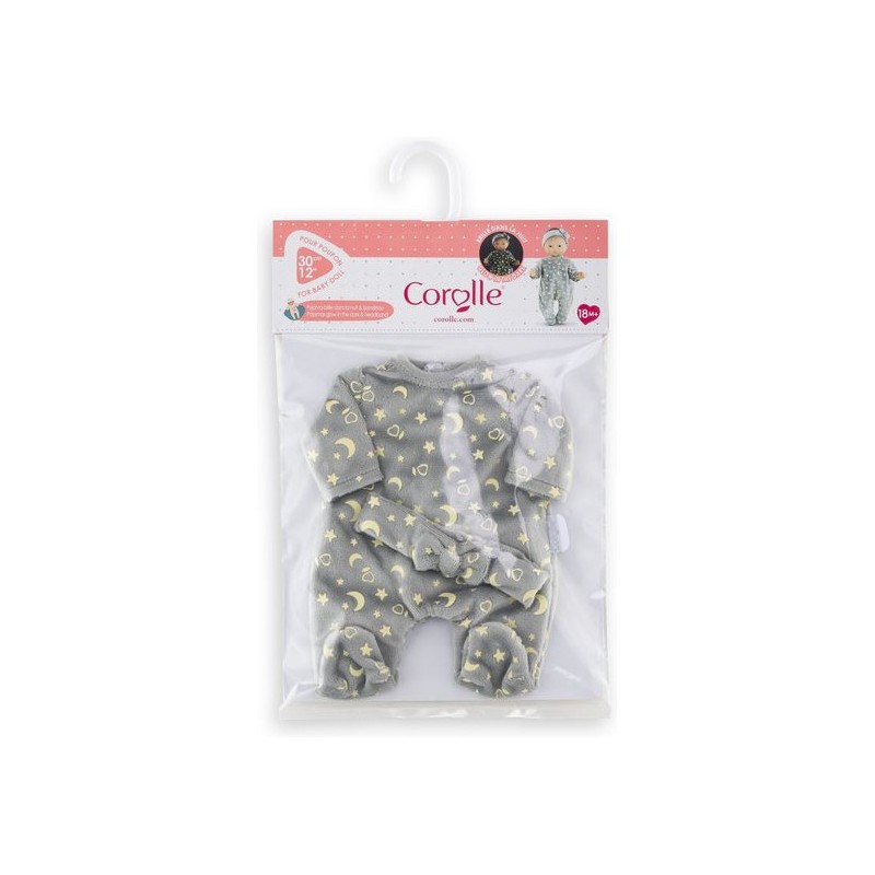 Le marchand de sable est passé, bébé va passer la nuit à faire de jolis et doux rêves ! Le Pyjama Brille dans la Nuit, avec son bandeau, est le vêtement idéal pour les petits poupons de 30 cm mon premier poupon Corolle. Ce joli pyjama a été confectionné dans des matières douces et résistantes.