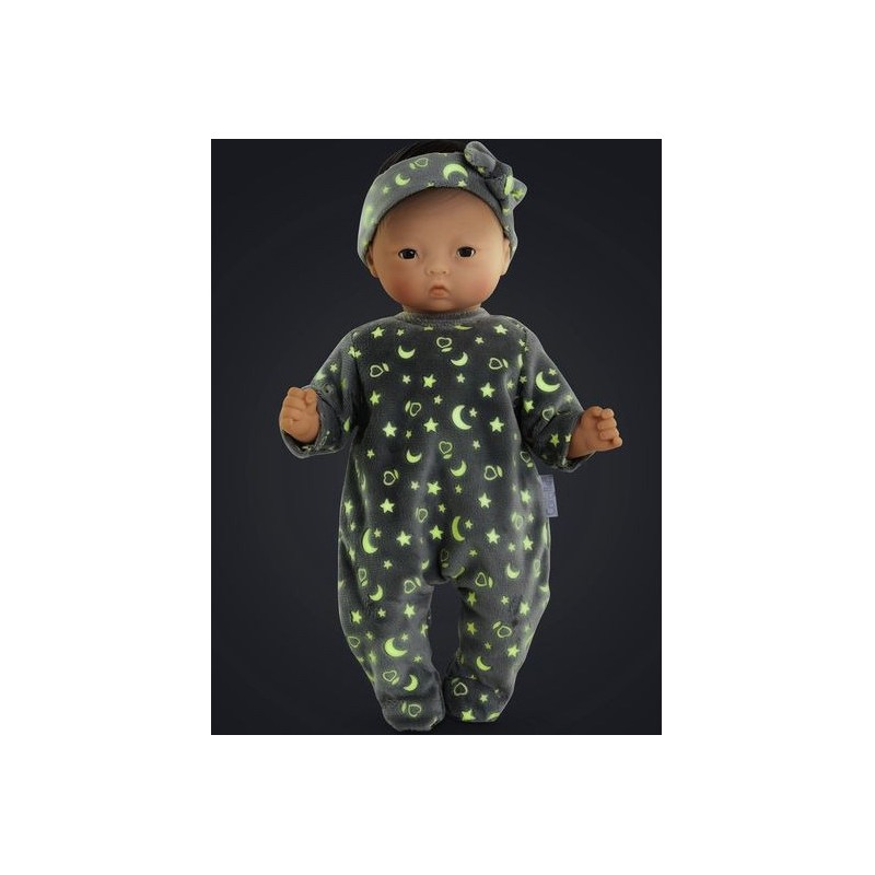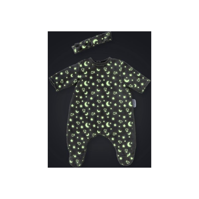 De jolies étoiles et lunes phosphorescentes viennent illuminer ce petit pyjama tout doux, et elles brillent dans le noir ! Il est facile à enfiler grâce aux bandes auto-agrippantes adaptées à la dextérité des petites mains. ! Retrouvez d’autres vêtements pour petits poupons de 30 cm pour compléter son dressing grâce à notre collection variée de vêtements et d'accessoires.