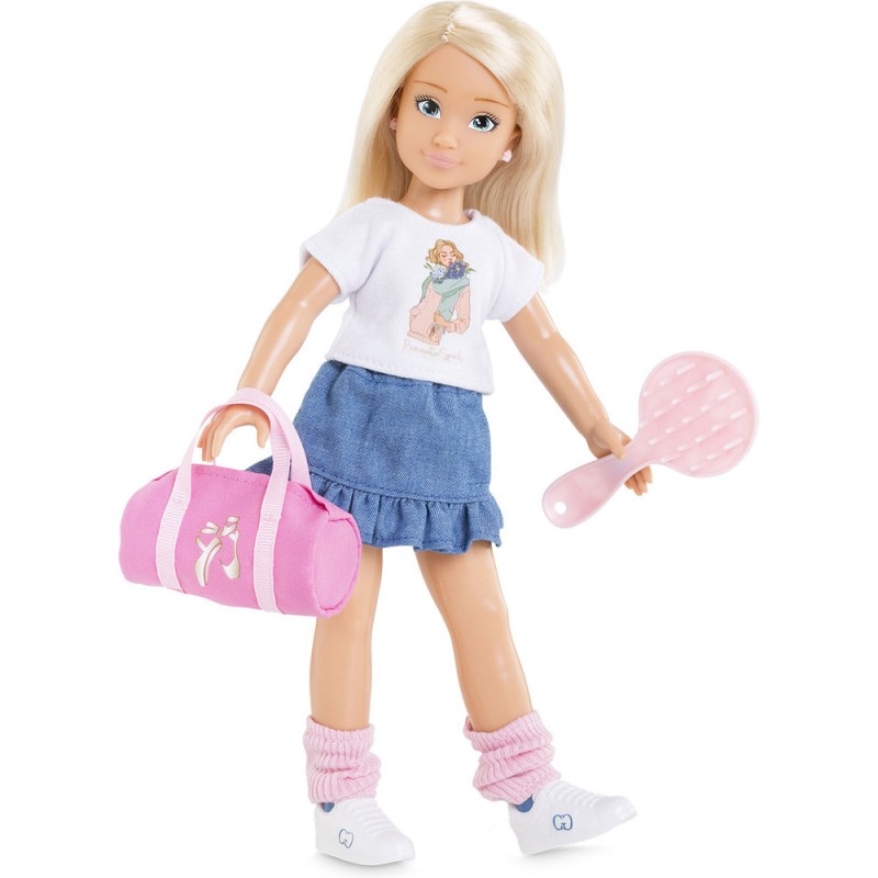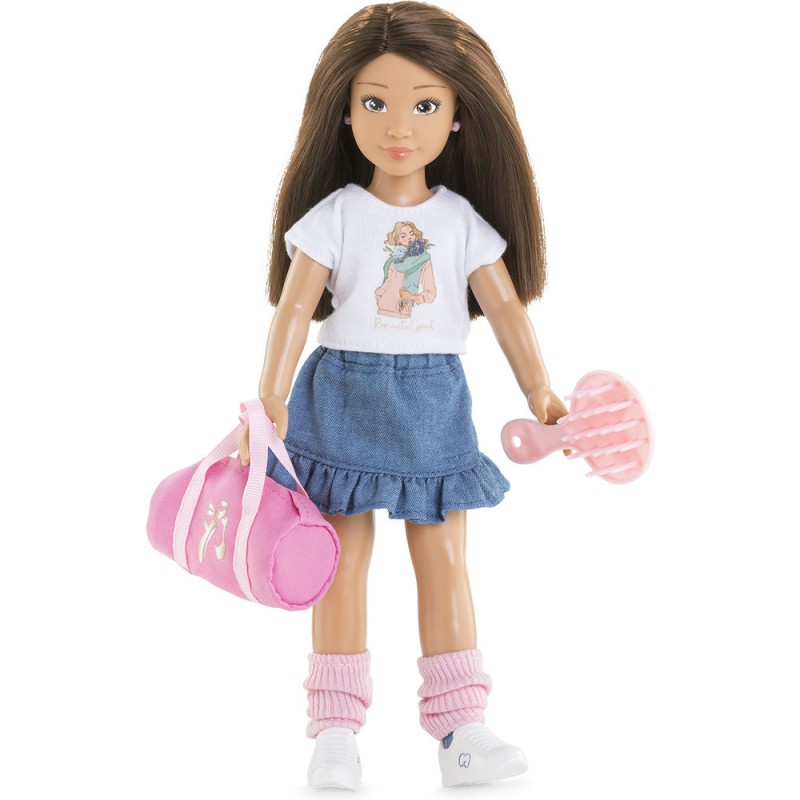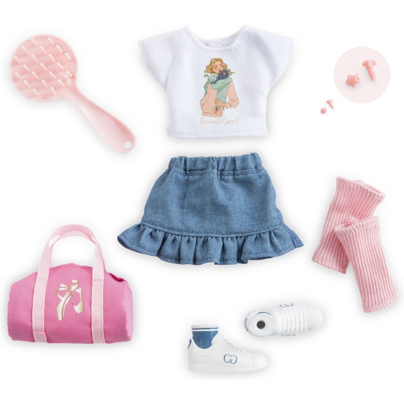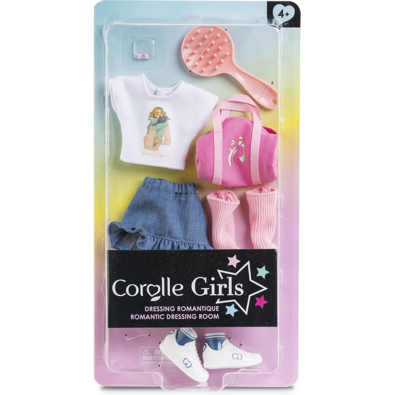 1 brosse à cheveux, 1 paire de boucles d’oreilles, 1 T-Shirt, 1 jupe, 1 paire de guêtres de danse, 1 paire de baskets amovibles et 1 sac de danse. Convient aux poupées mannequins Corolle Girls (28 cm). Poupée vendue séparément. Corolle Girls, mes meilleures amies