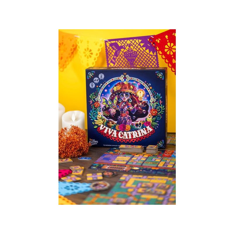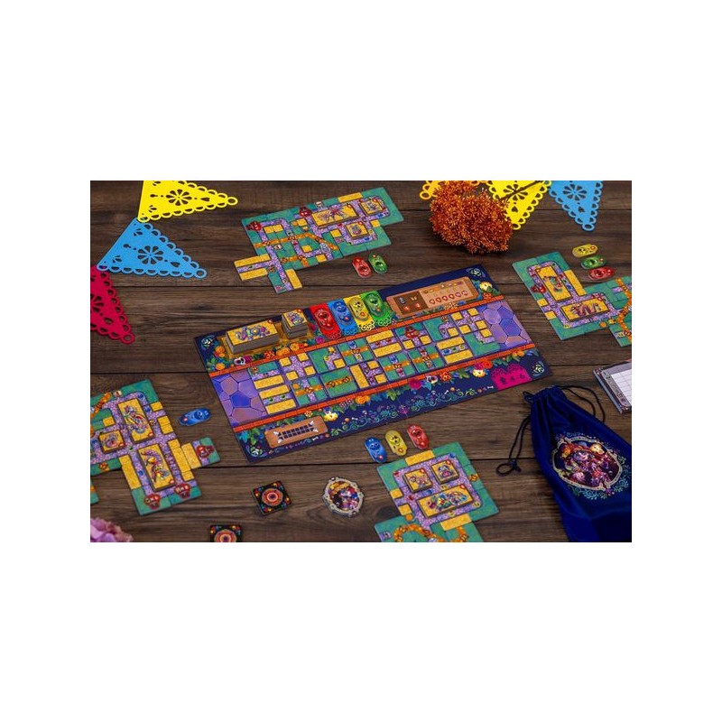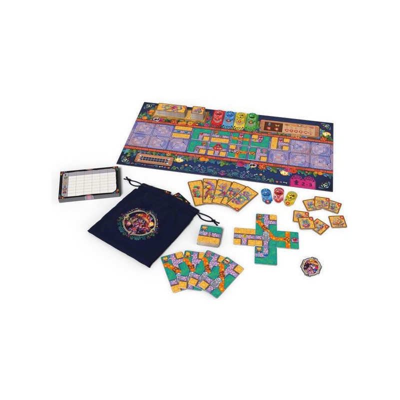 Créez le plus beau Village pour célébrer le Día de los Muertos en collectant ballons, chimères, visiteurs et papillons à travers un astucieux placement de tuiles. Le joueur ou la joueuse ayant accumulé le plus de points de victoire l’emporte.