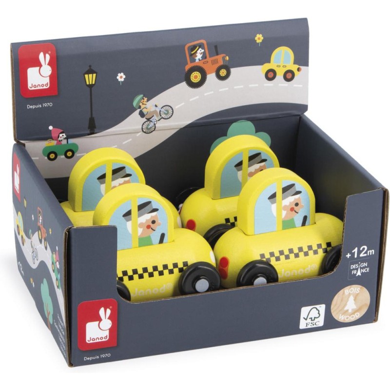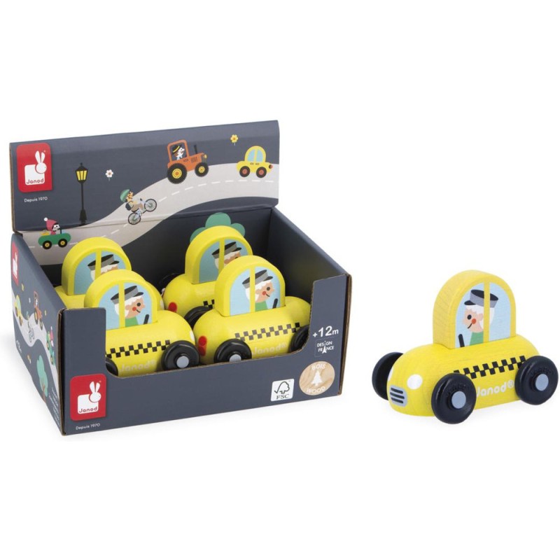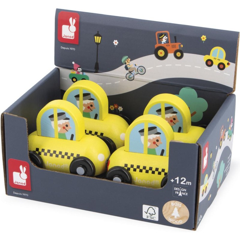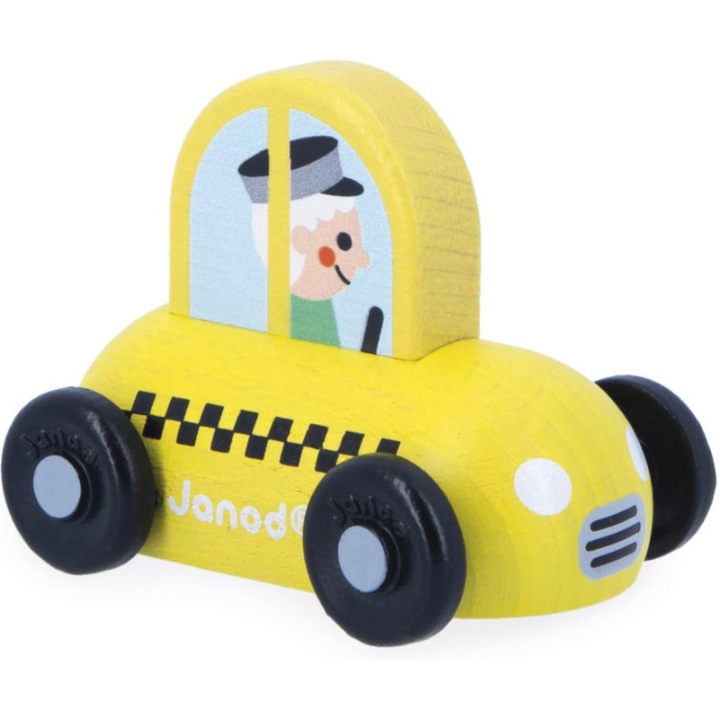 « Besoin d’une course ? » Cette petite voiture en bois convient aux enfants, dès l’âge de 12 mois. Dans son coloris jaune caractéristique, voilà un taxi facilement reconnaissable, prêt à vous déposer partout en ville ! Sa forme a été pensée spécialement pour une prise en main optimale pour les petits, qui peuvent facilement le tenir par le haut pour le faire rouler.