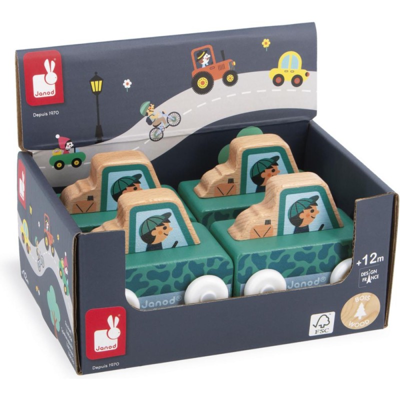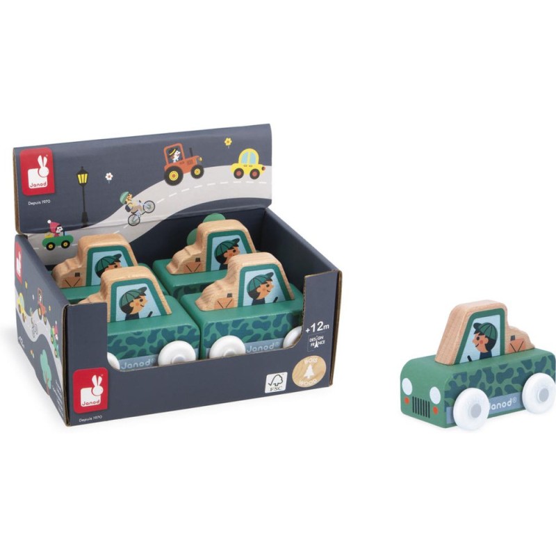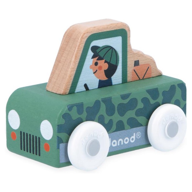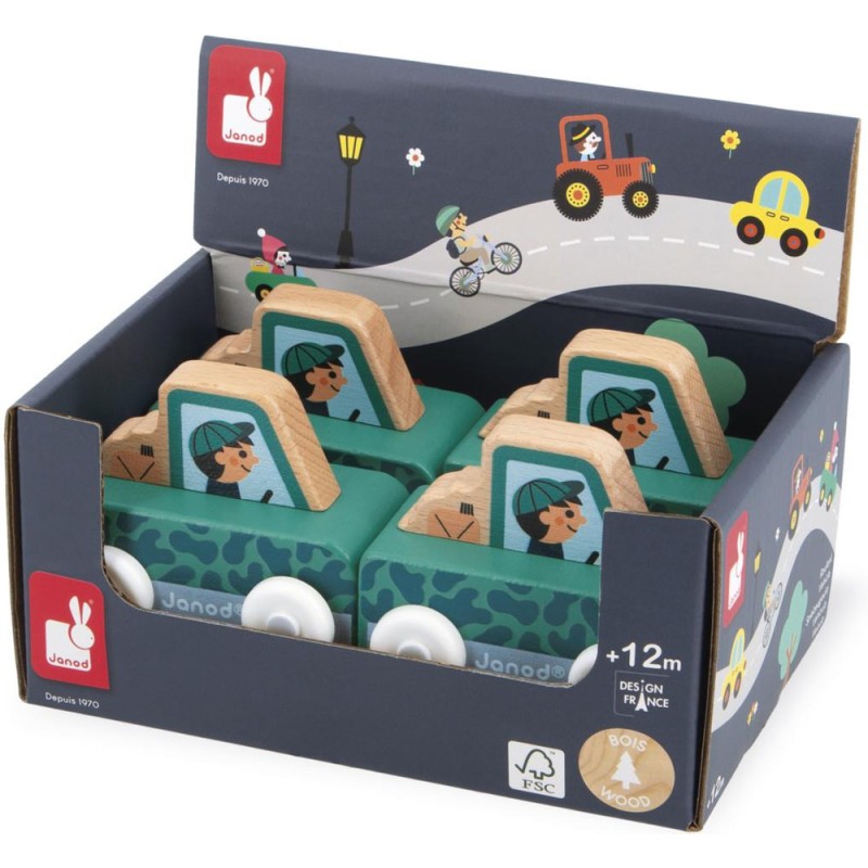 « Que la montagne est belle ! » Cette petite voiture en bois convient aux enfants, dès l’âge de 12 mois. Avec sa voiture tout-terrain, le garde forestier s’aventure dans les endroits les plus escarpés de la vallée ! Sa forme a été pensée spécialement pour une prise en main optimale pour les petits, qui peuvent facilement le tenir par le haut pour le faire rouler.