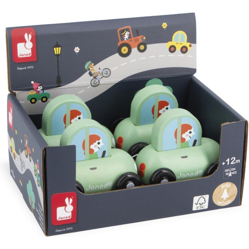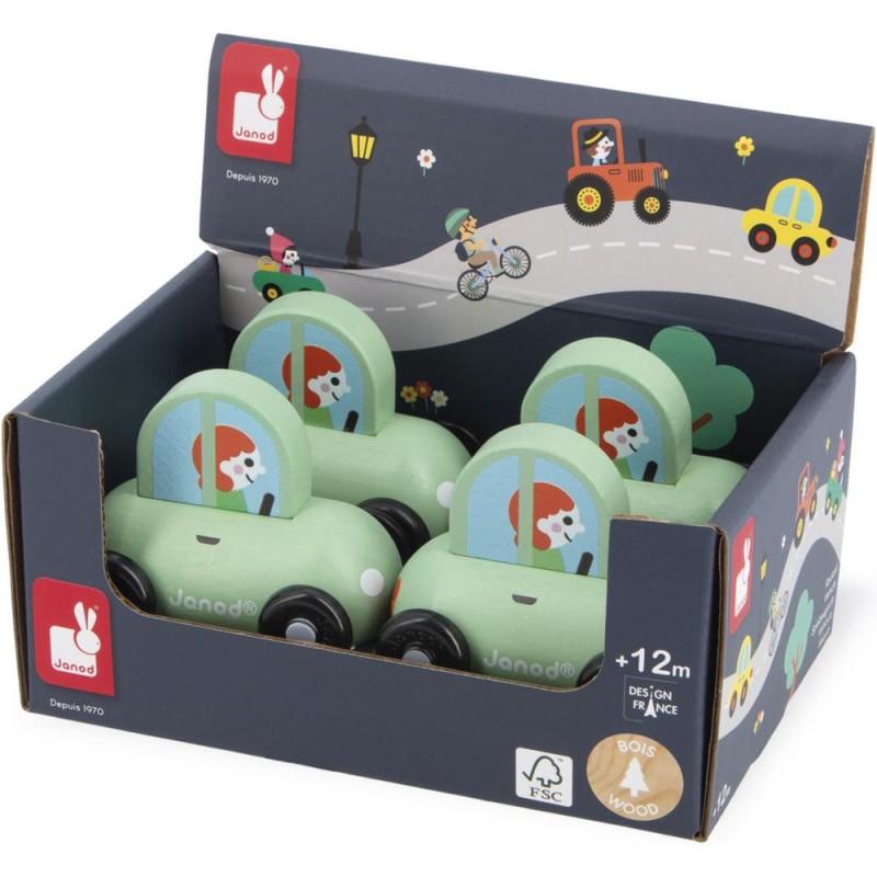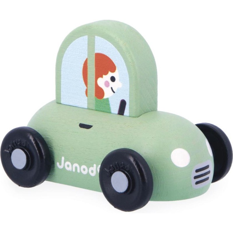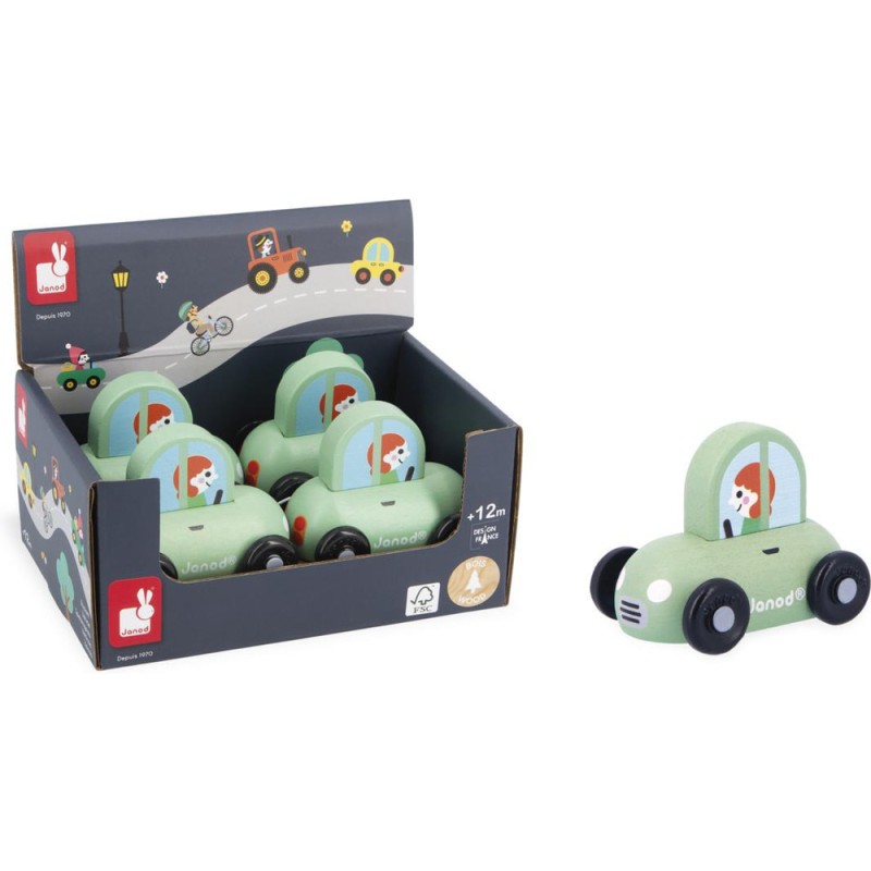 « En route pour le supermarché ! » Cette petite voiture en bois convient aux enfants, dès l’âge de 12 mois. Dans son joli coloris vert, voilà une berline compacte, idéale pour circuler en ville sans encombre ! Sa forme a été pensée spécialement pour une prise en main optimale pour les petits, qui peuvent facilement la tenir par le haut pour la faire rouler. Les véhicules sont parfaits pour inventer de nombreuses histoires et développer son imagination ! Les bébés s’amusent d’abord à les faire rouler, puis les plus grands se racontent toutes sortes d’aventures et développent leur vocabulaire et leur créativité. Cette petite voiture Janod est issue de notre collection Cross Roads : une série de tapis de jeu avec circuits, encore plus ludiques quand ils sont complétés par nos sets de cubes et nos petits véhicules en bois. La voiture verte convient particulièrement au tapis de jeu Ville, mais s’associe tout aussi bien avec d’autres tapis de la gamme. Elle est composée de bois issu de forêts gérées durablement, certifié Fsc™. « Et si on passait chez le fleuriste après les courses ? »