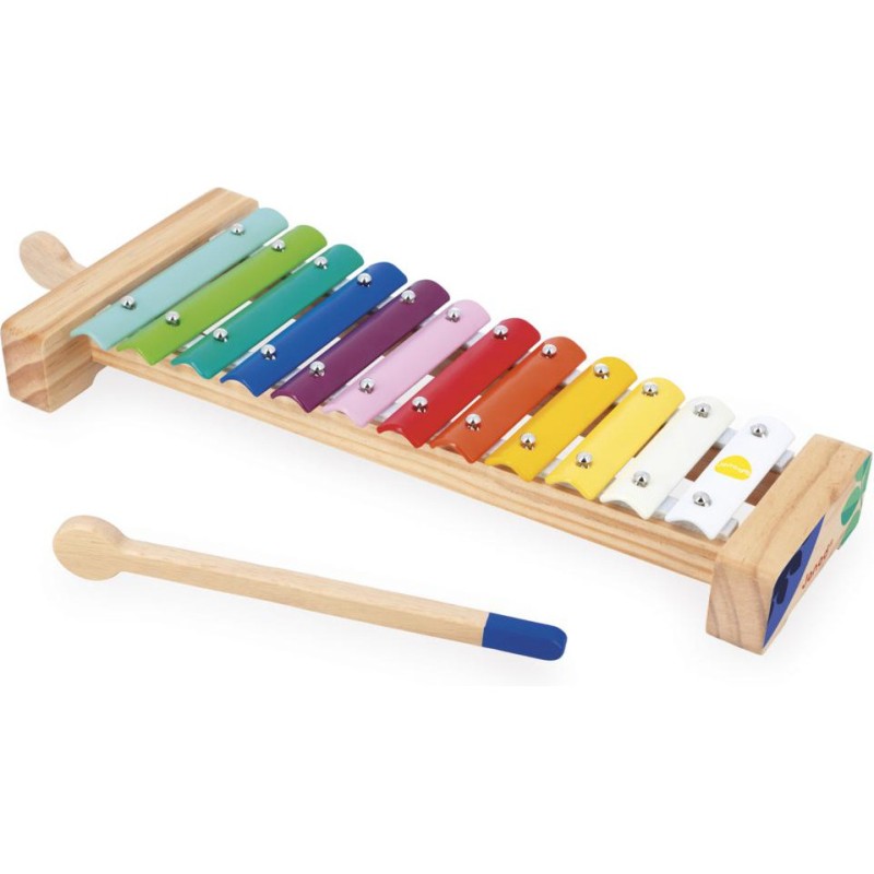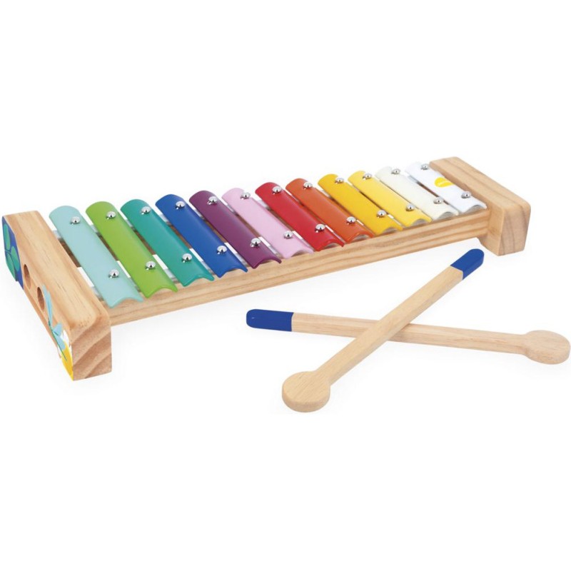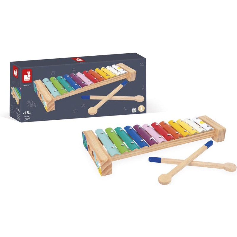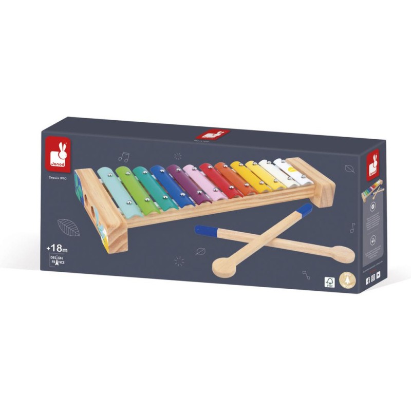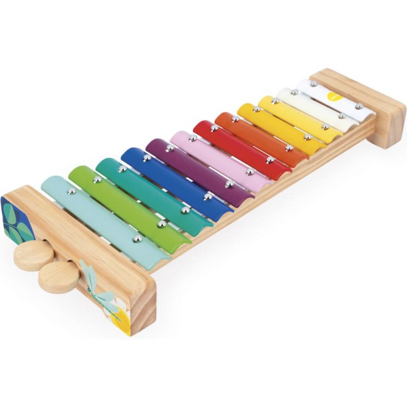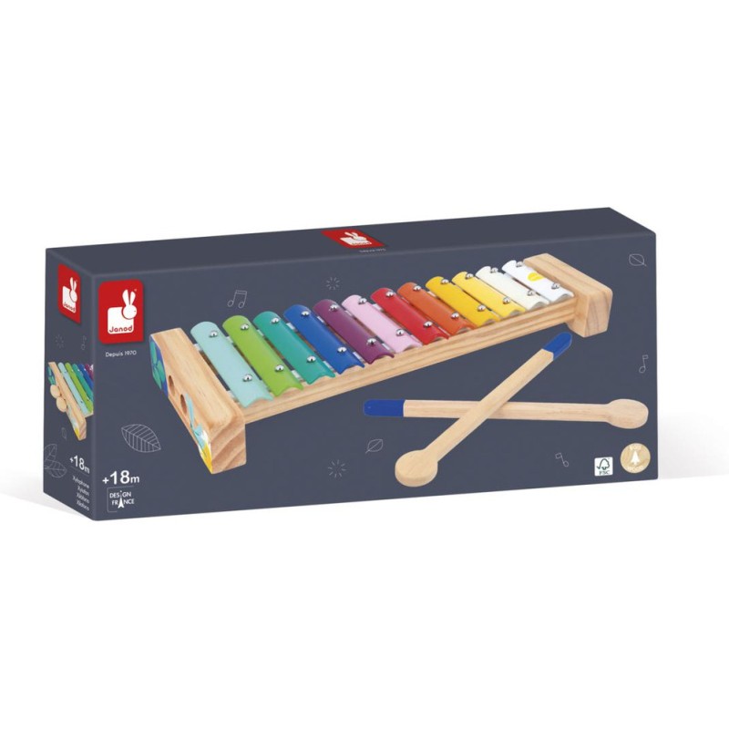 C’est parti pour l’éveil musical ! Ce xylophone en bois convient aux enfants à partir de 18 mois. Il propose 12 tonalités et est livré avec 2 baguettes, pour imiter les instruments des grands. Idéal pour développer son goût pour la musique et ses talents de musicien, dès le plus jeune âge, ce jouet musical arbore de jolies couleurs : celles de notre gamme Gioia. Le bois naturel se pare de couleurs vives sur chaque extrémité du xylo ! Avec leur jouet instrument de musique, les enfants imaginent leurs propres mélodies et imitent les plus grands avec leur instrument rien qu’à eux. Son format de 38 x 16 cm permet une bonne prise en main et son utilisation est super simple pour les petits. Toute la famille peut danser et chanter en rythme avec ce jouet d’imitation ! Il fait partie de notre gamme Gioia, une invitation à l’éveil musical dans la joie, permettant aux tout-petits de découvrir le monde des sons de manière ludique et sous le signe du partage. Xylophone jouet composé de bois issu de forêts gérées durablement, certifié Fsc™. Musique, maestro !