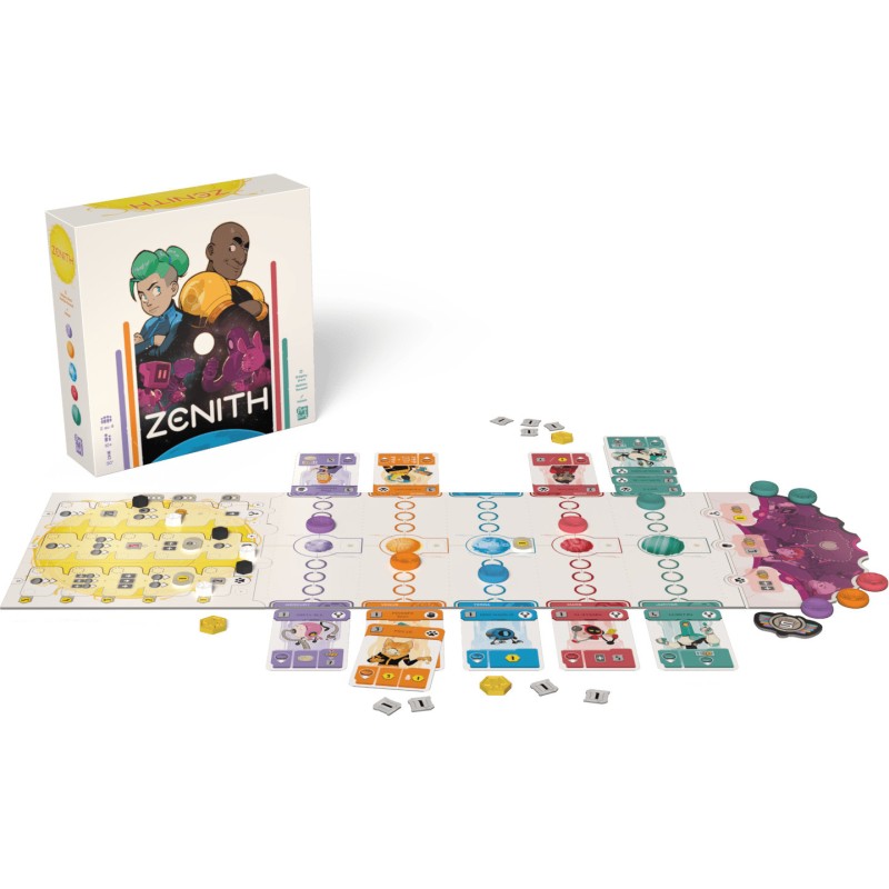 Qui prendra le contrôle du système solaire ? Zénith est un jeu tactique conçu pour 2 joueurs ou pour 4 joueurs en équipes. Dans cet affrontement stratégique, chaque camp se lance dans une lutte pour s’imposer sur les 5 planètes du système solaire. Pouvoir, diplomatie et développement technologique : toutes les stratégies sont permises pour décrocher la victoire. Avec un gameplay rapide à comprendre mais profondément stratégique, Zénith vous plonge dans une lutte pour contrôler le système solaire ou chaque choix compte. Grâce à son système de "tir à la corde", chaque mouvement rapproche votre camp de la victoire… ou peut tout faire basculer. Saurez-vous équilibrer tactique et prise de risque pour dominer vos adversaires ? Zénith, c’est l’alliance parfaite entre réflexion, tension et plaisir de jeu. Relevez le défi et prenez le contrôle du système solaire ! Contenu